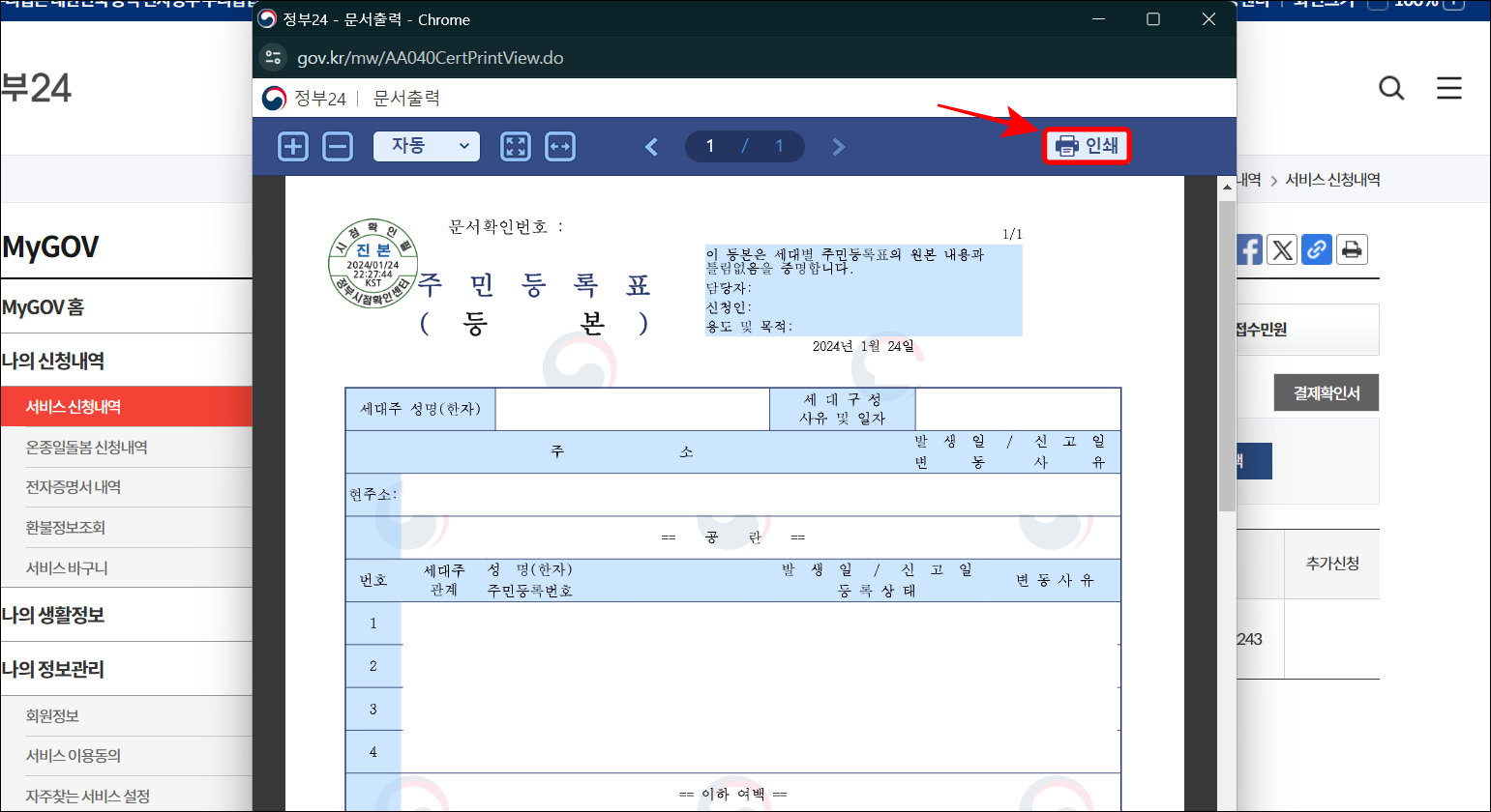 - 주민등록등본은 정부24에서 바로 출력 가능 (무료, 당일 발급)